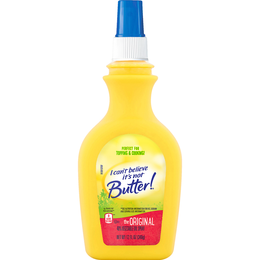 I Can't Believe It's Not Butter, The Original Oil Spray 12 Oz "Per One Spray: 0 Calories, 0g Total Fat, 0mg Sodium, 0g Total Carb, 0g Protein" ![]() |