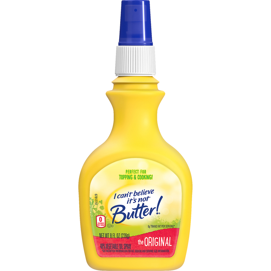 I Can't Believe It's Not Butter, The Original Oil Spray 8 Oz "Per One Spray: 0 Calories, 0g Total Fat, 0mg Sodium, 0g Total Carb, 0g Protein" ![]() |