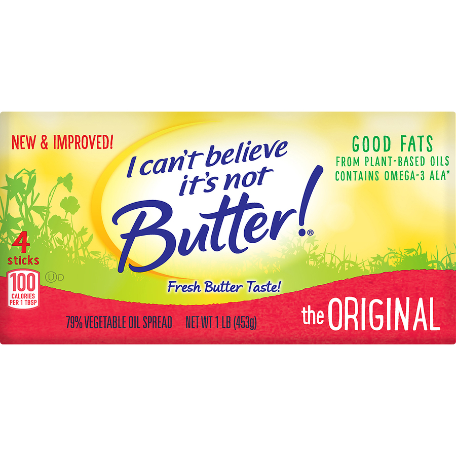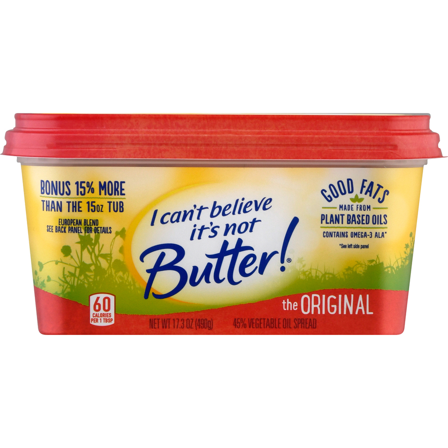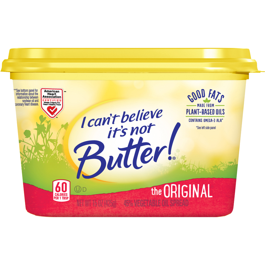 I Can't Believe It's Not Butter The Original Oil Spread 45 Oz "Per One TBSP: 60 Calories, 6g Total Fat, 90mg Sodium, 0g Total Carb, 0g Protein" ![]() |