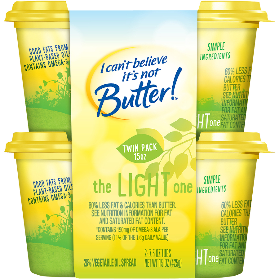 I Can't Believe It's Not Butter Twin Pack, Light 7.5 Oz Each "Per One TBSP: 35 Calories, 4g Total Fat, 85mg Sodium, 0g Total Carb, 0g Protein" ![]() |