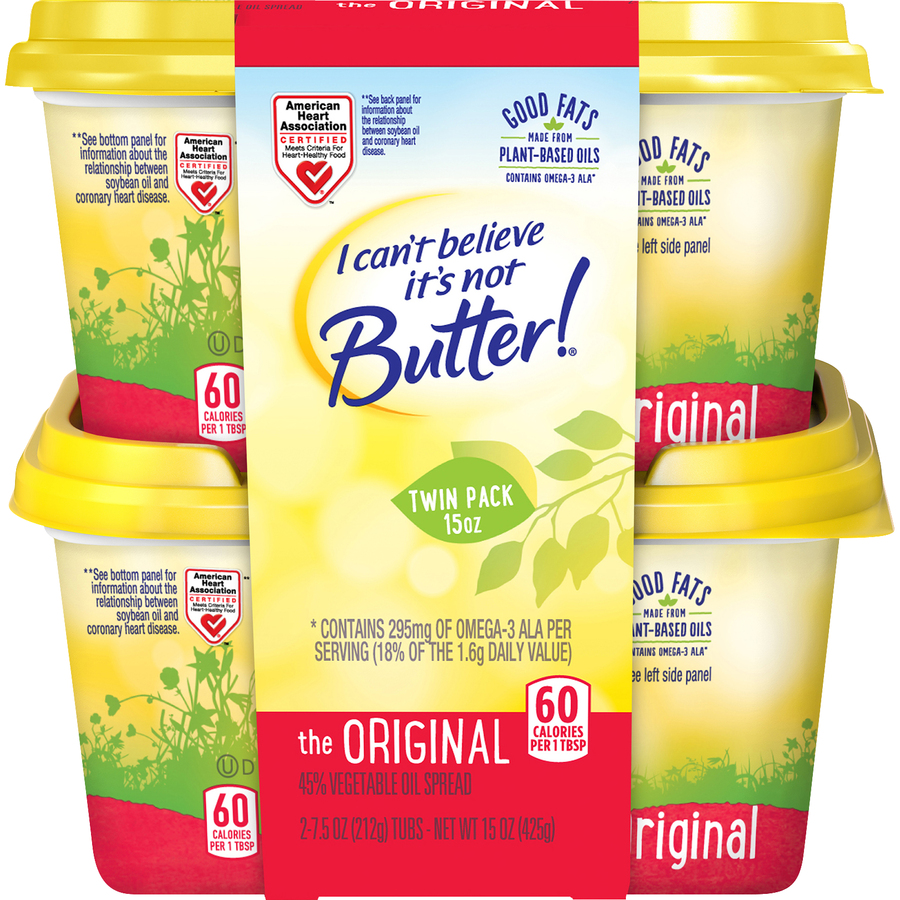 I Can't Believe It's Not Butter Twin Pack, Original 7.5 Oz Each "Per One TBSP: 60 Calories, 6g Total Fat, 90mg Sodium, 0g Total Carb, 0g Protein" ![]() |