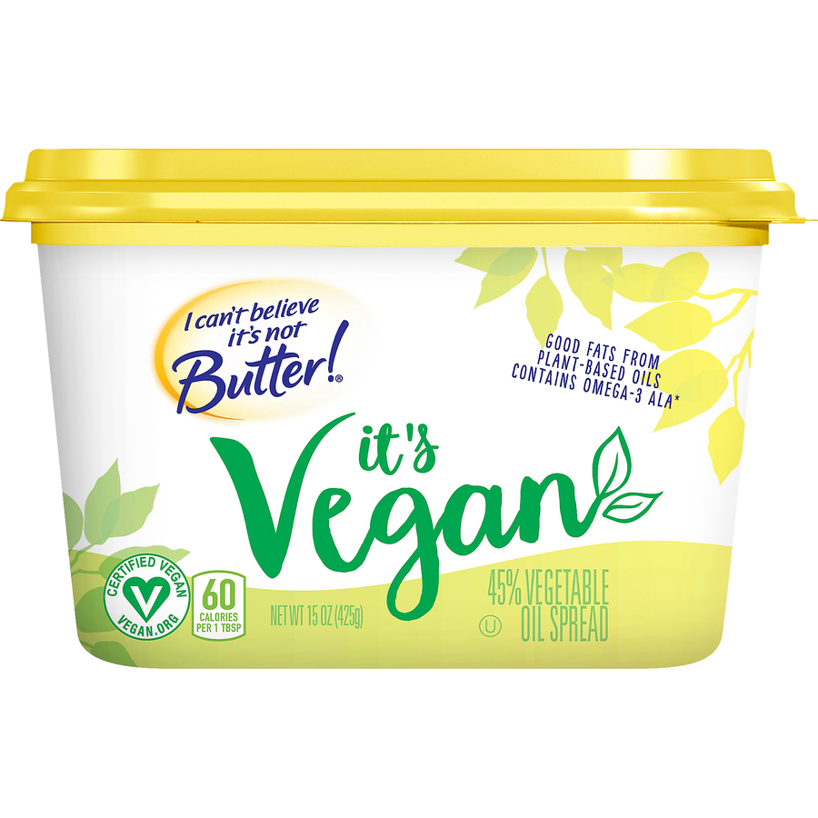 I Can't Believe It's Not Butter, Vegan Oil Spread 15 Oz "Per One TBSP: 60 Calories, 6g Total Fat, 90mg Sodium, 0g Total Carb, 0g Protein" ![]() |