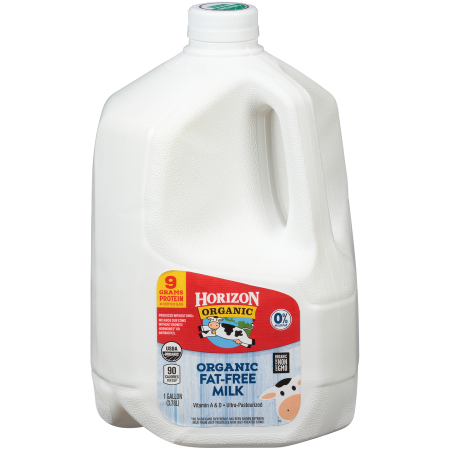 Horizon Organic Fat Free Milk, One Gallon "Per One Cup: 90 Calories, 0g Total Fat, 135mg Sodium, 13g Total Carbohydrate, 12g Sugar, 9g Protein" ![]() |