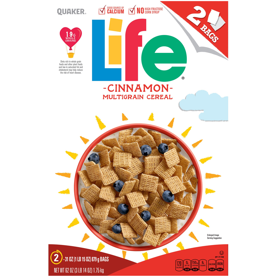 Life Multigrain Cinnamon Cereal, 2 Bags 62 Oz "Per 3/4 Cup: 120 Calories, 1.5g Total Fat, 0mg Cholesterol, 150mg Sodium, 25g Total Carbohydrate, 3g Protein" ![]() |