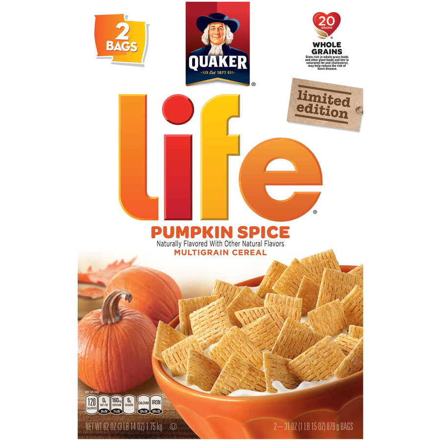Life Multigrain Pumpkin Spice Cereal 13 Oz "Per 3/4 Cup: 120 Calories, 1.5g Total Fat, 0mg Cholesterol, 160mg Sodium, 25g Total Carbohydrate, 3g Protein" ![]() |