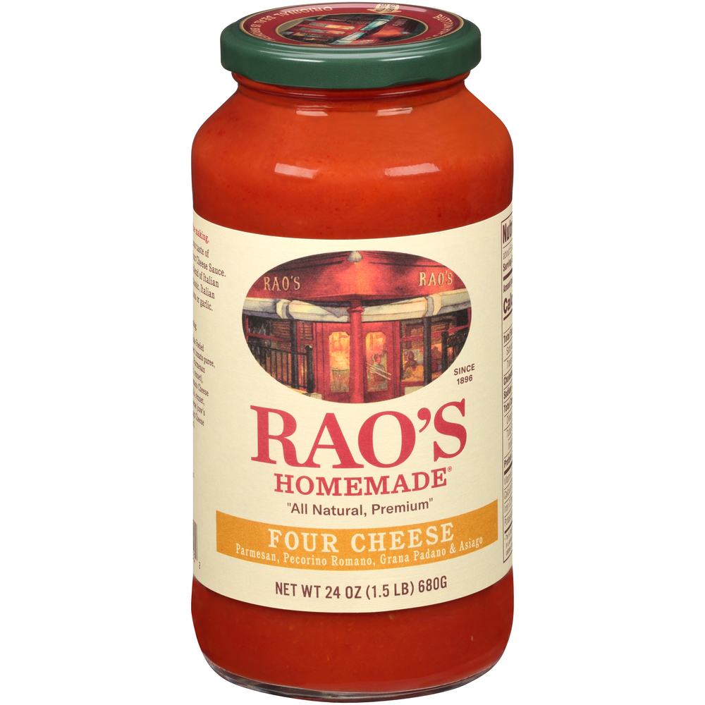 Raos Homemade Premium Four Cheese Sauce 24 Oz "Per One Half Cup: 90 Calories, 6g Total Fat, <5mg Cholesterol, 440mg Sodium, 7g Total Carbohydrate, 3g Protein" ![]() |