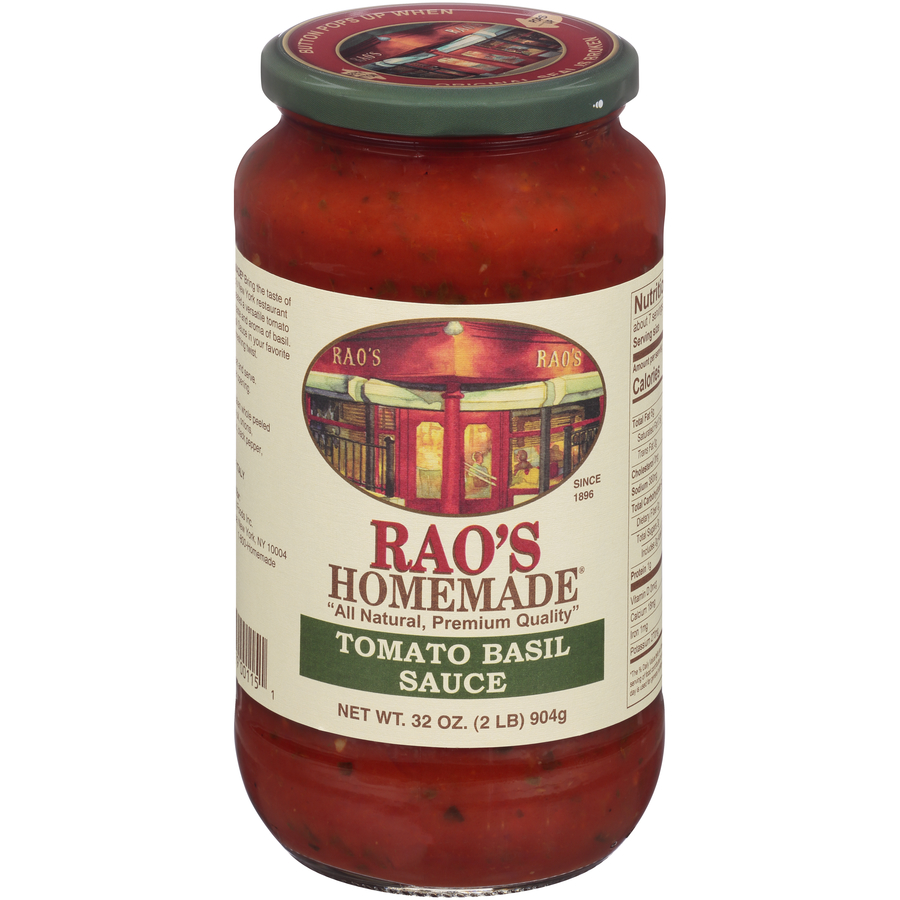 Raos Homemade Tomato Basil Sauce 32 Oz "Per One Half Cup: 80 Calories, 5g Total Fat, 0mg Cholesterol, 420mg Sodium, 6g Total Carbohydrate, 2g Protein" ![]() |
