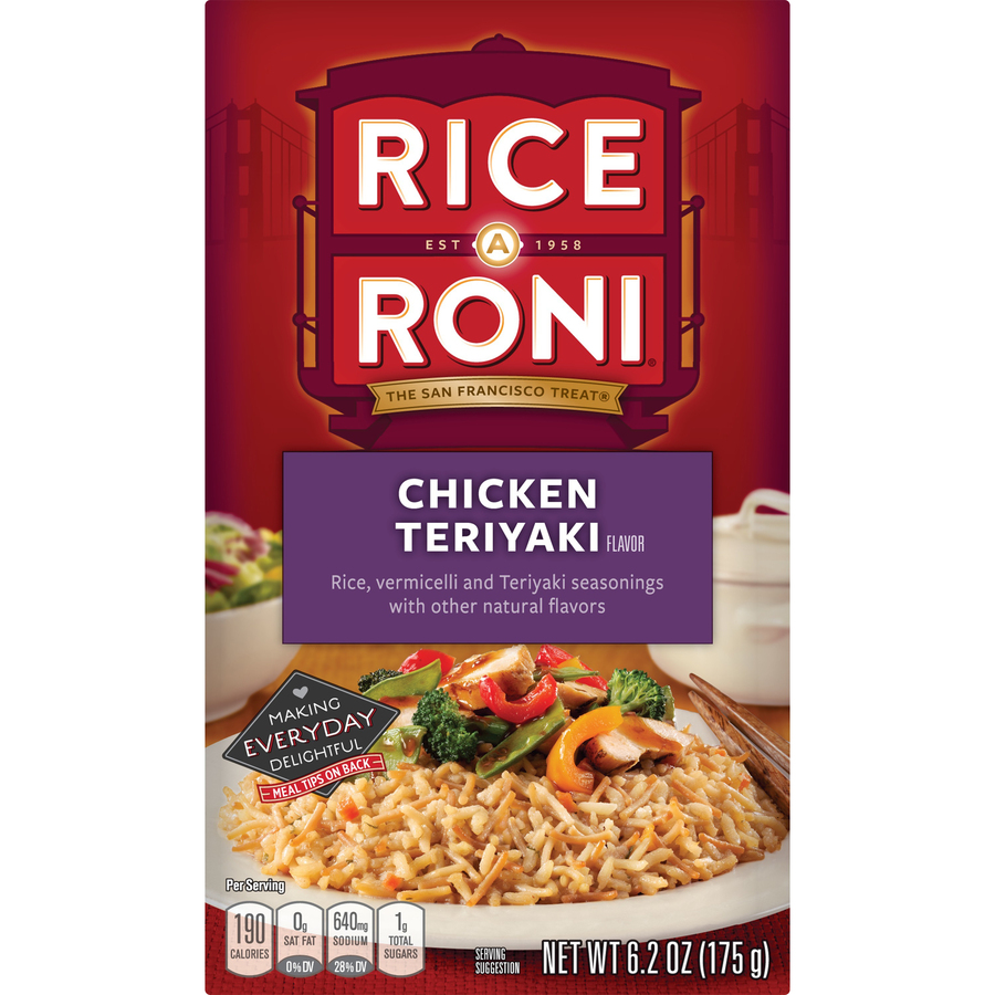 Chicken Teriyaki Flavored Rice 6.2 Oz "Per 2 Oz Serving: 190 Calories, 0.5g Total Fat, 0mg Cholesterol, 640 Sodium, 41g Total Carb, 5g Protein" ![]() |