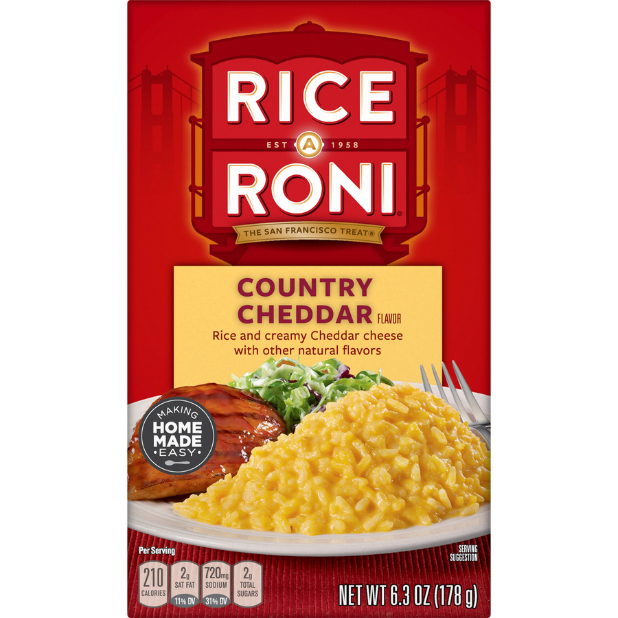 Country Cheddar Flavored Rice 6.3 Oz "Per 2 Oz Serving: 300 Calories, 13g Total Fat, 10mg Cholesterol, 830 Sodium, 41g Total Carb, 7g Protein" ![]() |