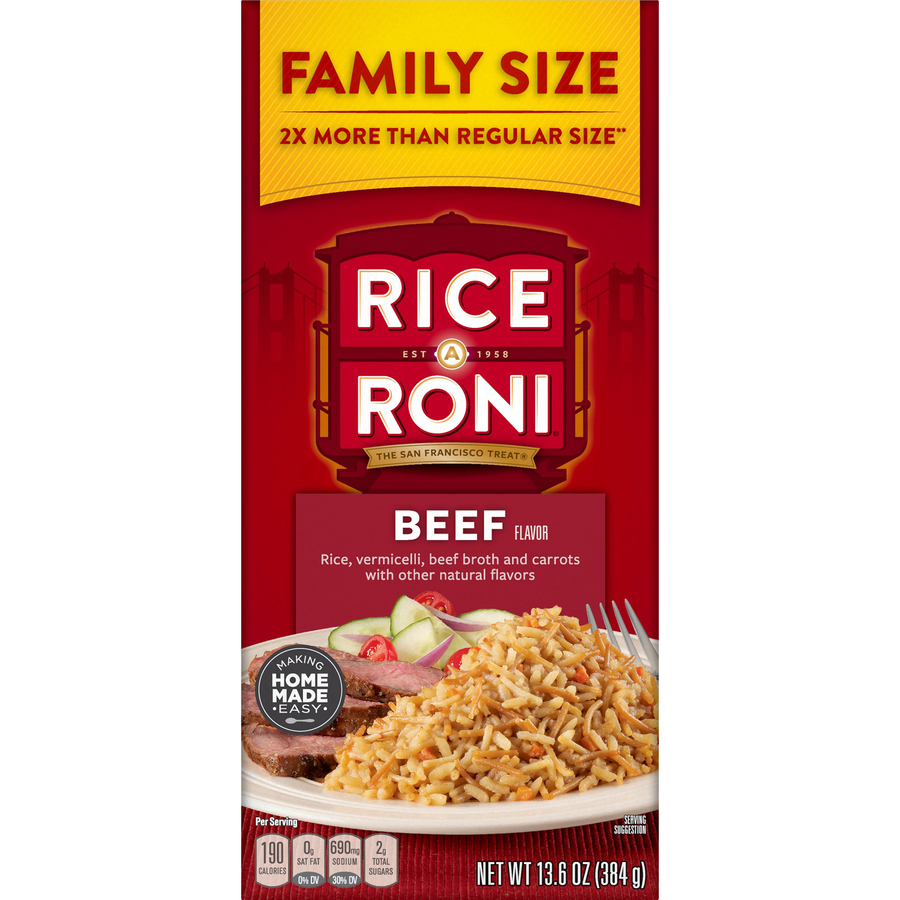 Family Size Beef Flavored Rice 13.6 Oz "Per 2 Oz Serving: 190 Calories, 0.5g Total Fat, 0mg Cholesterol, 690 Sodium, 41g Total Carb, 6g Protein" ![]() |
