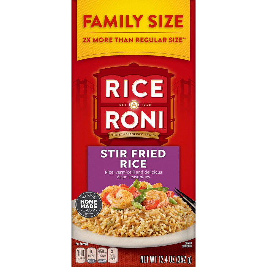 Stir Fried Rice A Roni Sides 6.2 Oz "Per 2 Oz Serving: 180 Calories, 0.5g Total Fat, 0mg Cholesterol, 950 Sodium, 41g Total Carb, 5g Protein" ![]() |