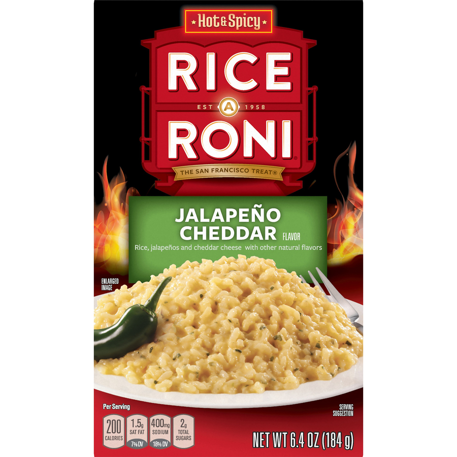 Hot & Spicy Jalapeño Cheddar Rice 6.4 Oz "Per 2 Oz Serving: 300 Calories, 11g Total Fat, 5mg Cholesterol, 520 Sodium, 44g Total Carb, 6g Protein" ![]() |