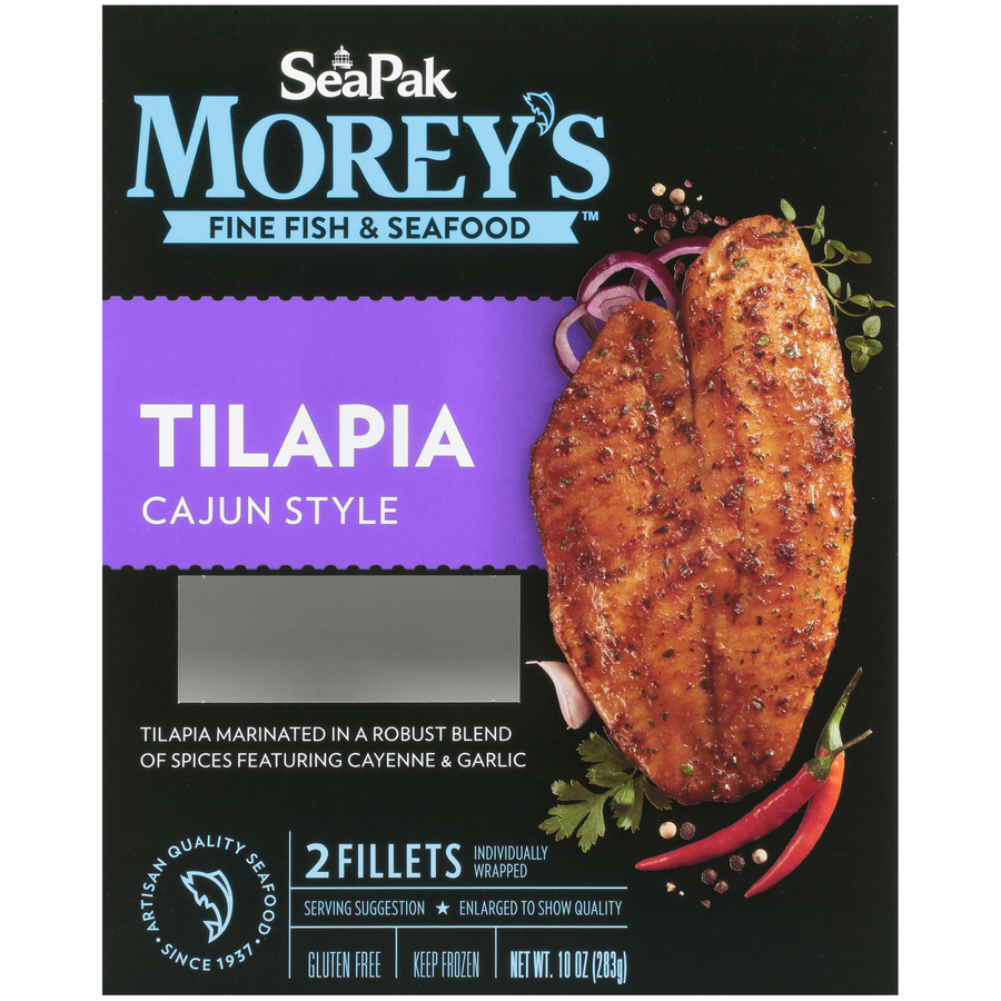 Cajun Style Tilapia Fillets, Two 10 Oz "One Fillet: 240 Calories, 15g Total Fat, 55mg Cholesterol, 600mg Sodium, 3g Total Carbohydrate, 23g Protein" ![]() |