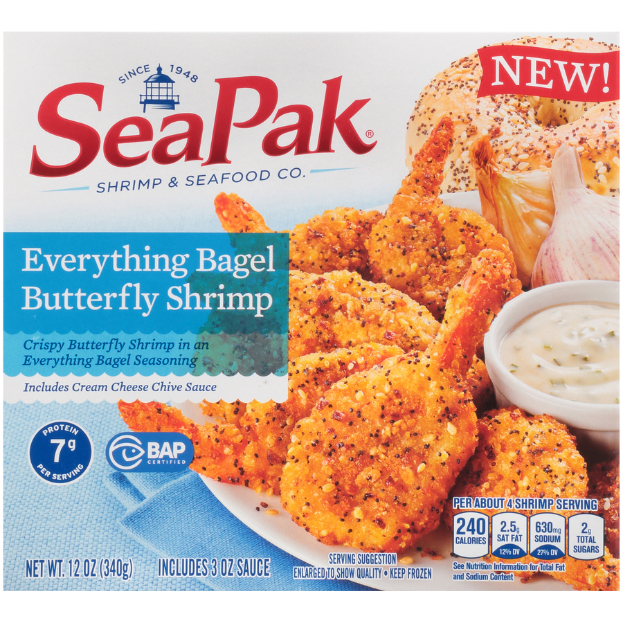 Bagel Seasoned Butterfly Shrimp 12 Oz "Per Four Shrimp: 240 Calories, 15g Total Fat, 30mg Cholesterol, 630mg Sodium, 18g Total Carbohydrate, 7g Protein" ![]() |