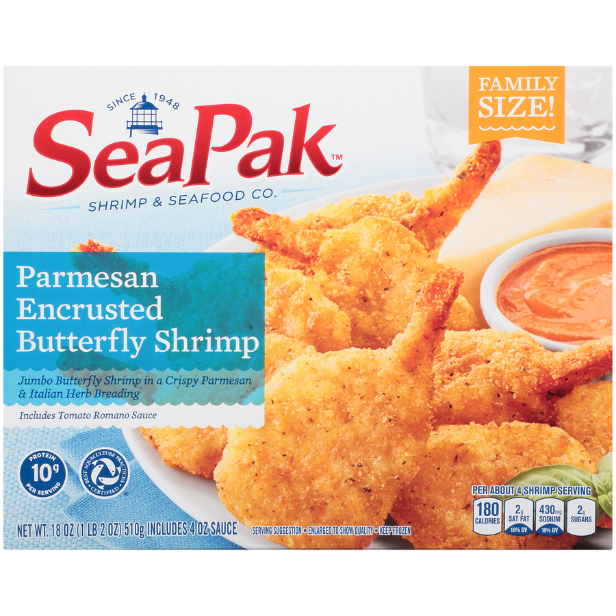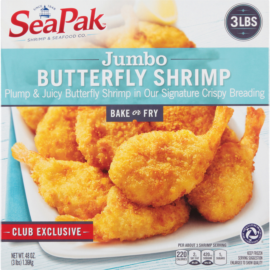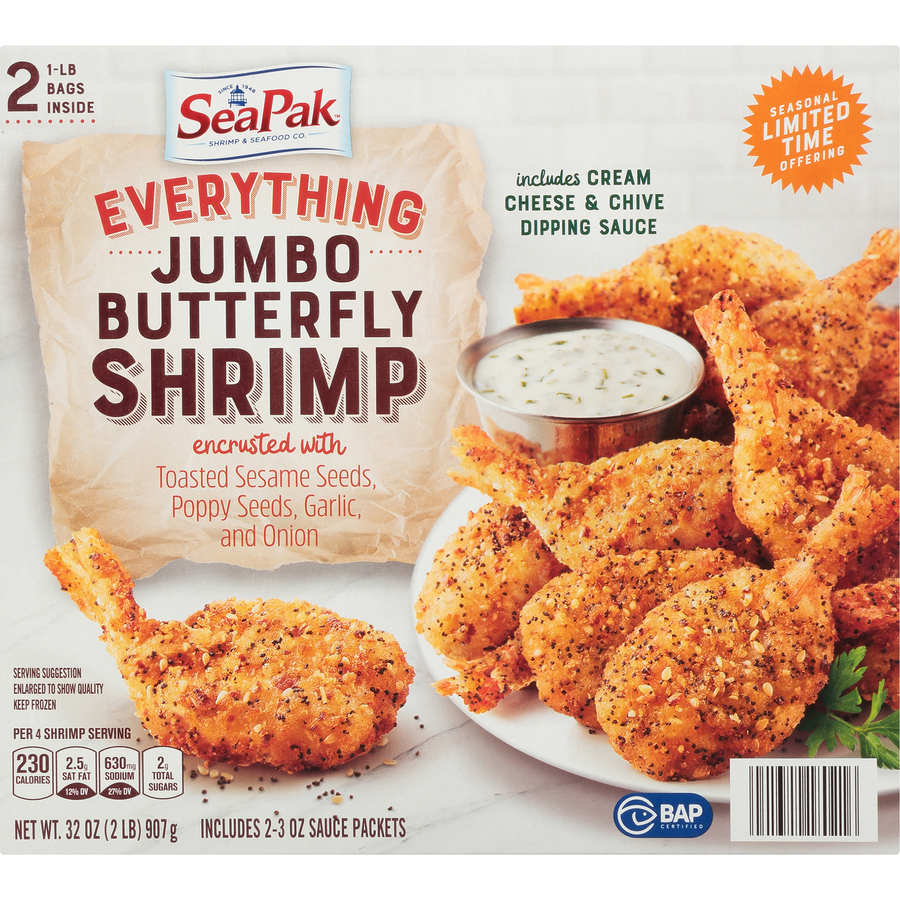 Sea Pak Oven Crispy Butterfly Shrimp 20 Oz "Per Seven Shrimp: 210 Calories, 11g Total Fat, 30mg Cholesterol, 490mg Sodium, 21g Total Carbohydrate, 7g Protein" ![]() |