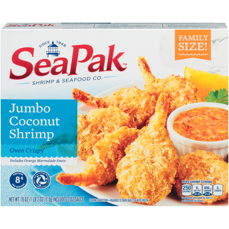 Oven Crispy Jumbo Coconut Shrimp 18 Oz "Per 4 Shrimp: 250 Calories, 15g Total Fat, 45mg Cholesterol, 400mg Sodium, 21g Total Carbohydrate, 8g Protein" ![]() |