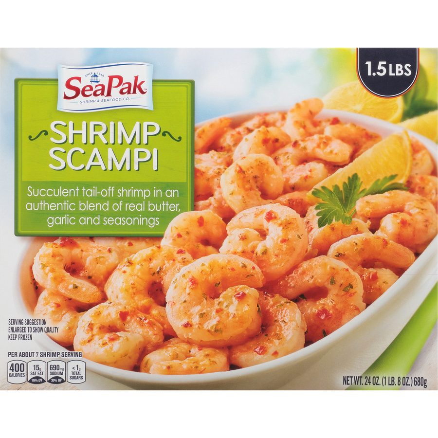 Sea Pak Garlic Butter Tail-Off Shrimp 32Oz "Per 9 Shrimp: 270 Calories, 21g Total Fat, 195mg Cholesterol, 540mg Sodium, 3g Total Carbohydrate, 18g Protein" ![]() |