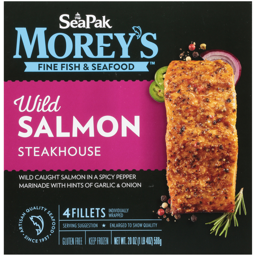 Sea Pak Seasoned Grill Wild Salmon Fillets, Two 10 Oz "One Fillet: 200 Calories, 8g Total Fat, 35mg Cholesterol, 410mg Sodium, 5g Total Carbohydrate, 27g Protein" ![]() |