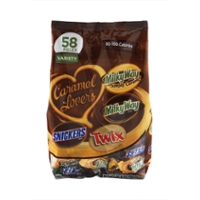 | Snickers Peanut Lovers Fun Size Bag W/Peanut M&M 55 Pieces 36.0 Oz  | Snickers Caramel Variety Pack 58 Pieces W/Twix, Milky Way Regular & Milky Way Caramel 35.0 Oz  |