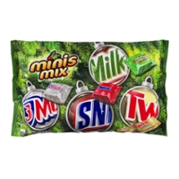 | Snickers Minis Mix Christmas Deco Bag W/3Musketeers, Twix, & Milky Way 10.57 Oz  | Snickers Minis Christmas Deco Bag 11.50 Oz  |
