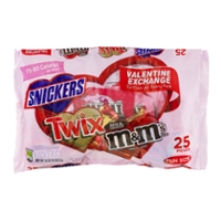 | Snickers Minis Valentines Exchange Mix W/Twix & M&M 25 Pieces 16.20 Oz  | Snickers Six Pack Fun Size 3.40 Oz  |