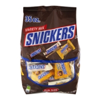| Snickers Variety Mix, Fun Size W/Almond Bar & Peanut Butter Squares 11 Oz  | Snickers Variety Mix Fun Size, W/Almond Bar & Peanut Butter Squares 35.0 Oz  |