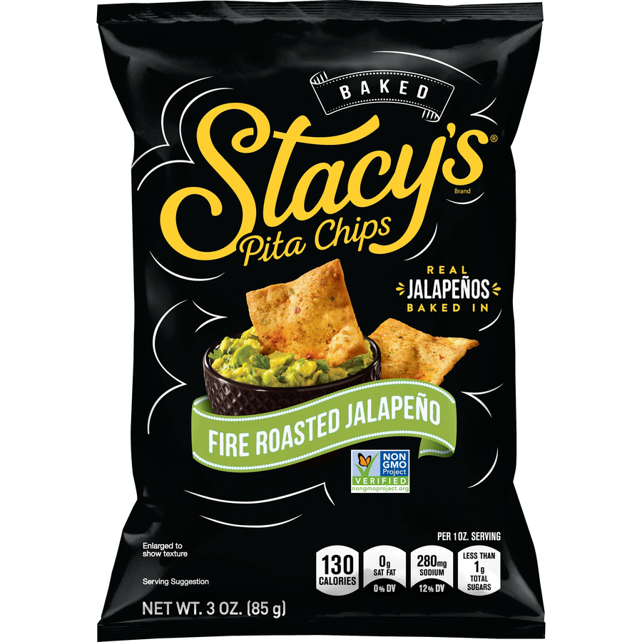 Fire Roasted Jalapeño Pita Chips 3 Oz "Per Package: 400 Calories, 15g Total Fat, 0mg Cholesterol, 830mg Sodium, 55g Total Carbohydrate, 10g Protein" ![]() |