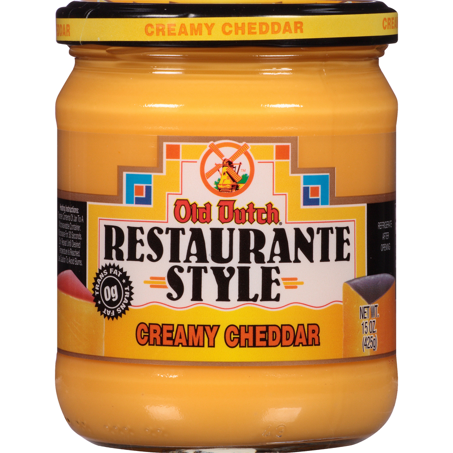 Old Dutch Restaurante Style Creamy Cheddar Cheese Dip 15 Oz "Per 2 Tbsp: 45 Calories, 3g Total Fat, 0mg Cholesterol, 280mg Sodium, 4g Total Carb, 1g Protein" ![]() |