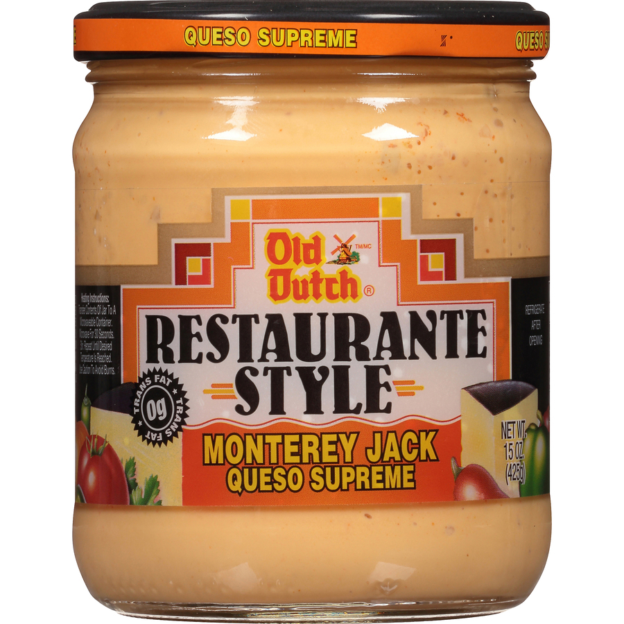 Dutch Restaurante Style Monterey Jack Queso 15 Oz "Per 2 Tbsp: 40 Calories, 2.5 Total Fat, 0mg Cholesterol, 240mg Sodium, 3g Total Carb, 1g Protein" ![]() |