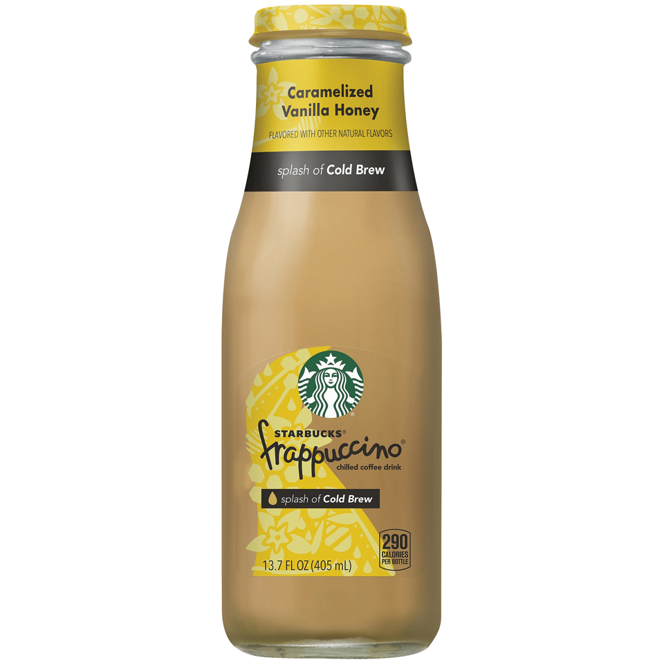 Chilled Caramelized Vanilla Honey Frappuccino 13.7 FL Oz "Per One Cold Brew Bottle: 290 Calories, 4.5g Total Fat, 20mg Cholesterol, 230mg Sodium, 52g Total Carb, 9g Protein" ![]() |