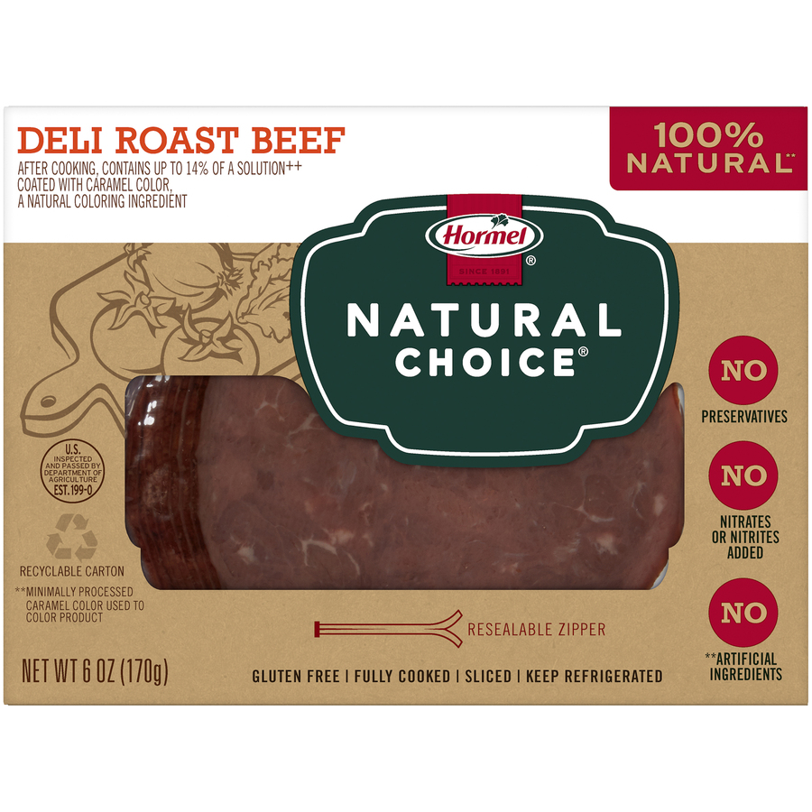 Hormel Natural Choice Deli Roast Beef 6 Oz "Per 4 Slices: 60 Calories, 2g Total Fat, 30mg Cholesterol, 550 Sodium, 0g Total Carbs, 11g Protein" ![]() |