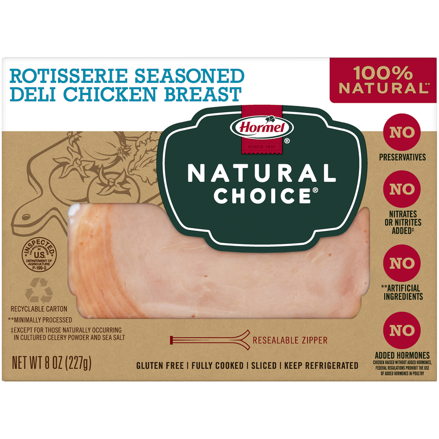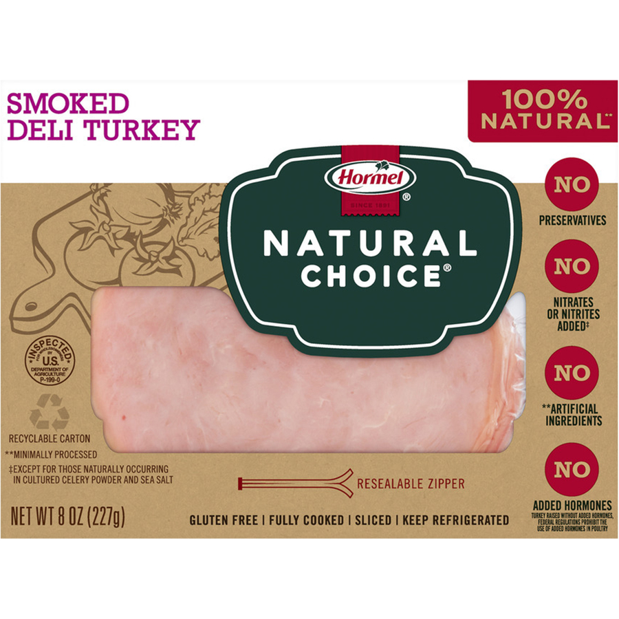 Hormel Natural Choice Smoked Deli Turkey 8 Oz "Per 3 Slices: 60 Calories, 1g Total Fat, 25mg Cholesterol, 490 Sodium, 1g Total Carbs, 11g Protein" ![]() |