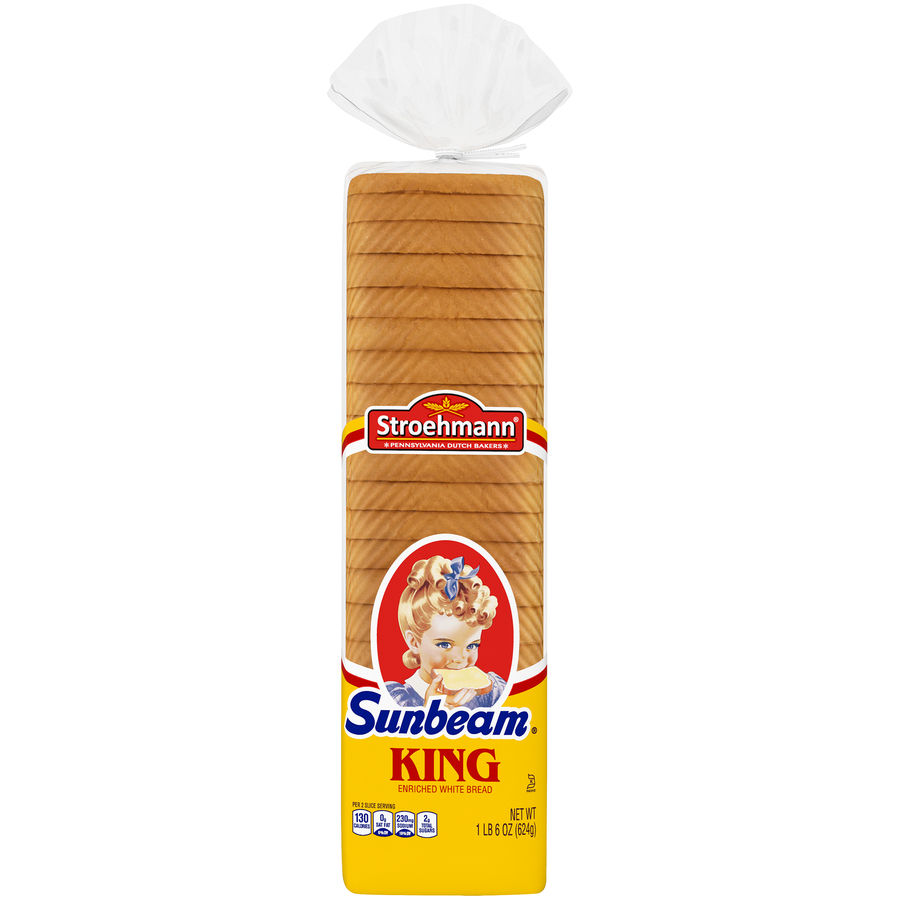 Sunbeam King Thin Enriched Bread 1 LB 4 Oz "Per Two Slices: 130 Calories, 1.5g Total Fat, 0mg Cholesterol, 220mg Sodium, 24g Total Carbohydrate, 4g Protein" ![]() |