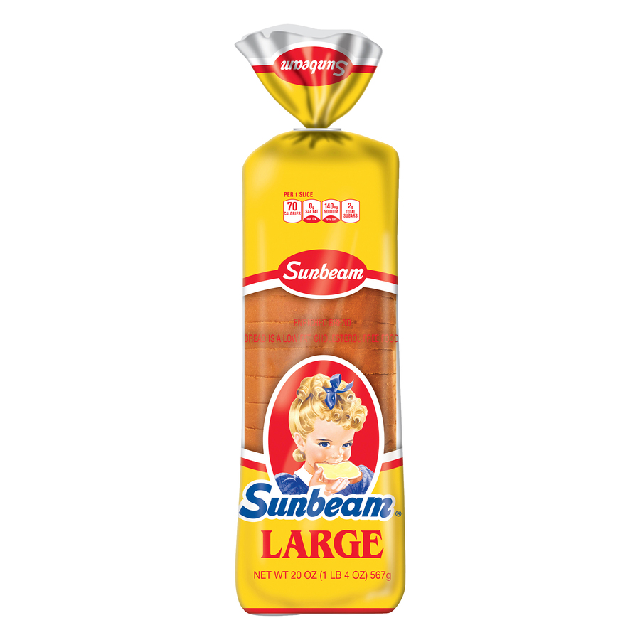 Sunbeam Large Enriched Bread 1 LB 4 Oz "Per One Slice: 70 Calories, 1g Total Fat, 0mg Cholesterol, 140mg Sodium, 13g Total Carbohydrate, 2g Protein" ![]() |