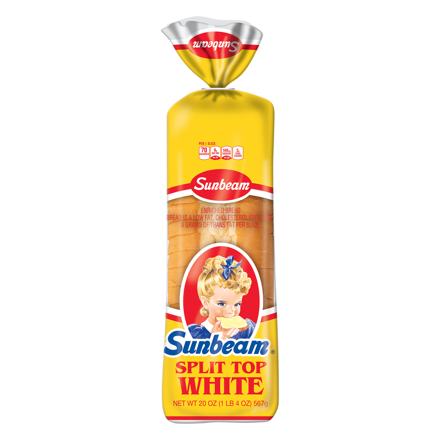 Sunbeam Split Top White Bread 1 LB 4 Oz "Per One Slice: 70 Calories, 1g Total Fat, 0mg Cholesterol, 140mg Sodium, 13g Total Carbohydrate, 2g Protein" ![]() |