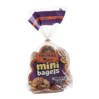 Mini Bagels Cinnamon Raisin, 10 Pre-Sliced 15 Oz "120 Calories Per Bagel Serving, 0g Saturated Fat, 180mg Sodium & 6g Sugars" ![]() |