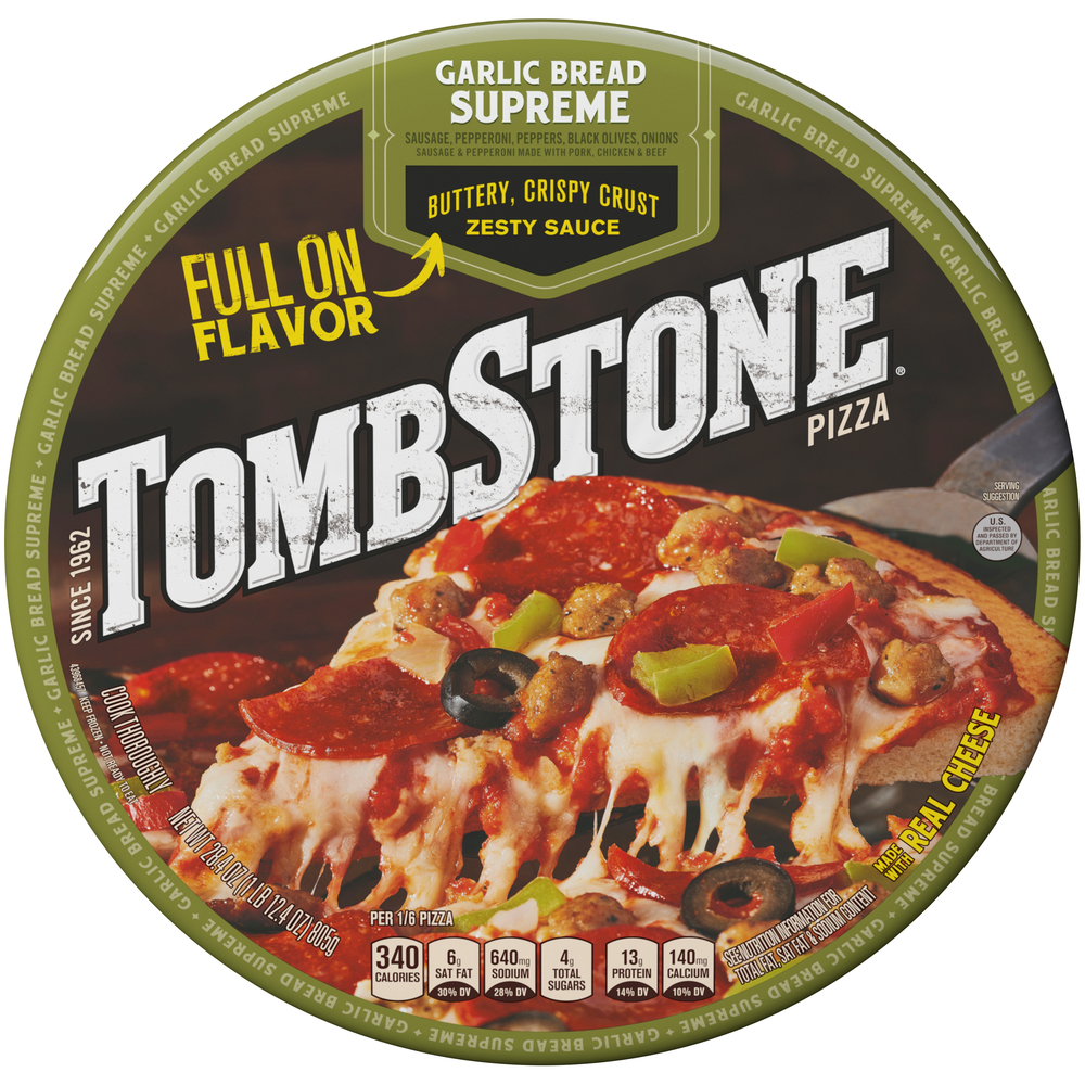 Tombstone Garlic Bread Pepperoni Pizza 27 Oz "Per 1/6 Pizza: 340 Calories, 16g Total Fat, 20mg Cholesterol, 670mg Sodium, 37g Total Carbohydrate, 11g Protein" ![]() |