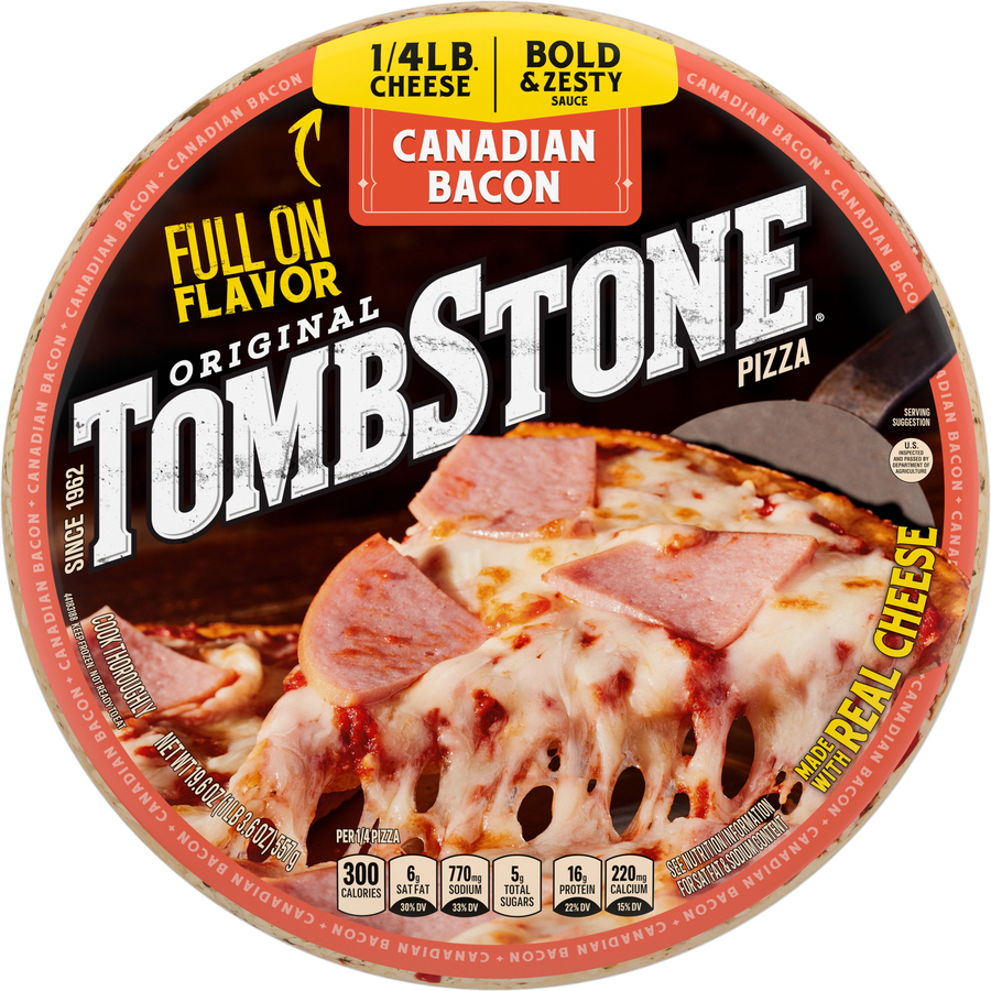 Original Tombstone Canadian Bacon Pizza 19.6 Oz "Per 1/4 Pizza: 300 Calories, 12g Total Fat, 25mg Cholesterol, 770mg Sodium, 34g Total Carbohydrate, 16g Protein" ![]() |