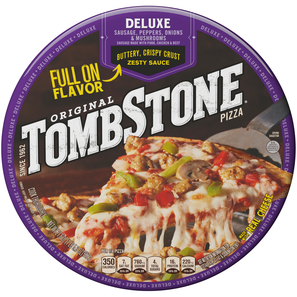 Tombstone Deluxe Pizza 21.6 Oz "Per 1/4 Pizza: 350 Calories, 7g Sat Fat, 760mg Sodium, 4g Total Sugars, 16g Protein And 220mg Calcium." ![]() |