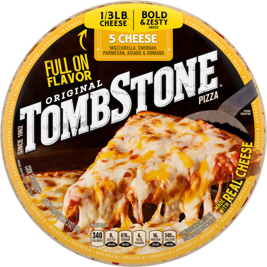 Tombstone Five Cheese Pizza 19.3 Oz "Per 1/4 Pizza: 340 Calories, 16g Total Fat, 30mg Cholesterol, 710mg Sodium, 34g Total Carbohydrate, 16g Protein" ![]() |