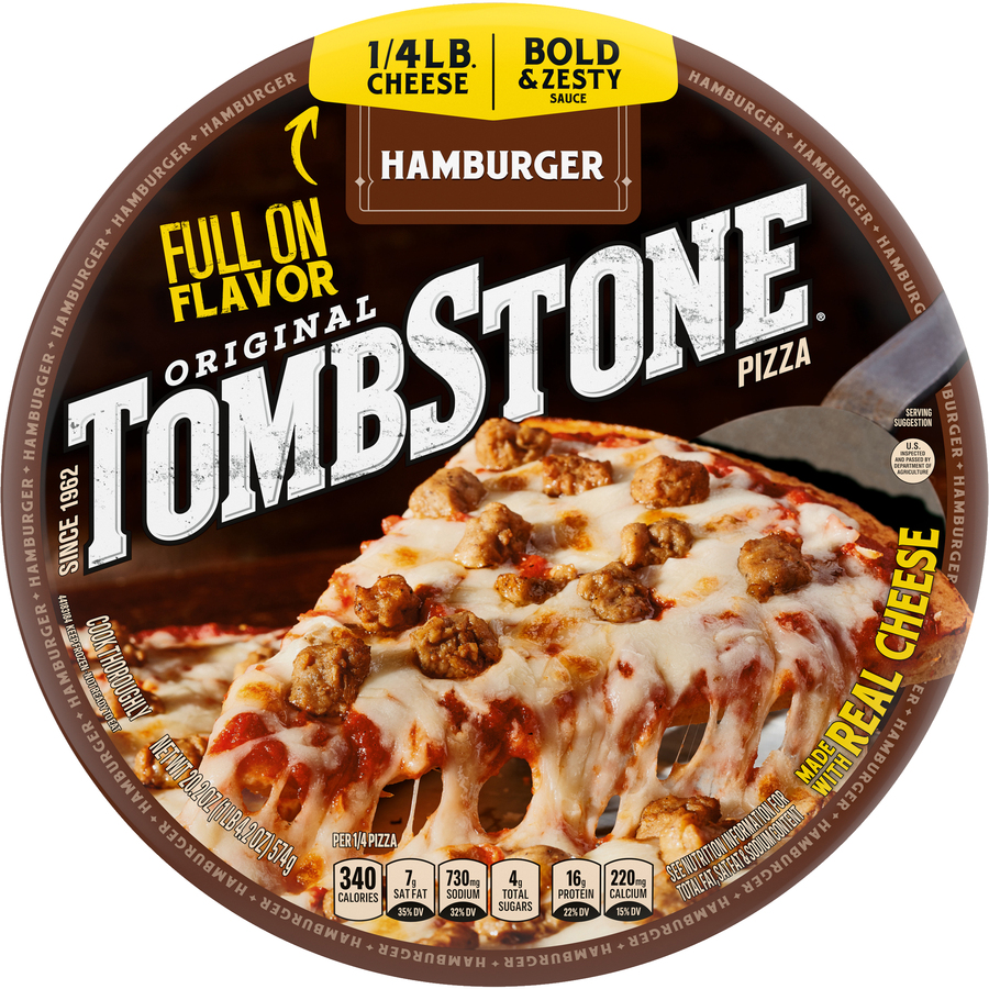 Original Tombstone Hamburger Pizza 20.2 Oz "Per 1/4 Pizza: 340 Calories, 15g Total Fat, 25mg Cholesterol, 730mg Sodium, 34g Total Carbohydrate, 16g Protein" ![]() |