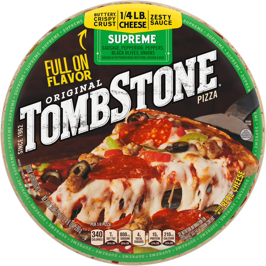 Original Tombstone Supreme Pizza 20.8 Oz "Per 1/4 Pizza: 340 Calories, 16g Total Fat, 30mg Cholesterol, 800mg Sodium, 35g Total Carbohydrate, 15g Protein" ![]() |