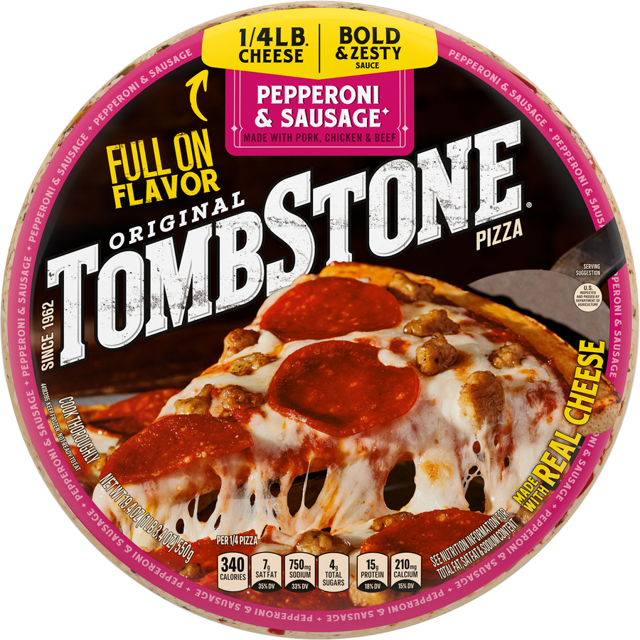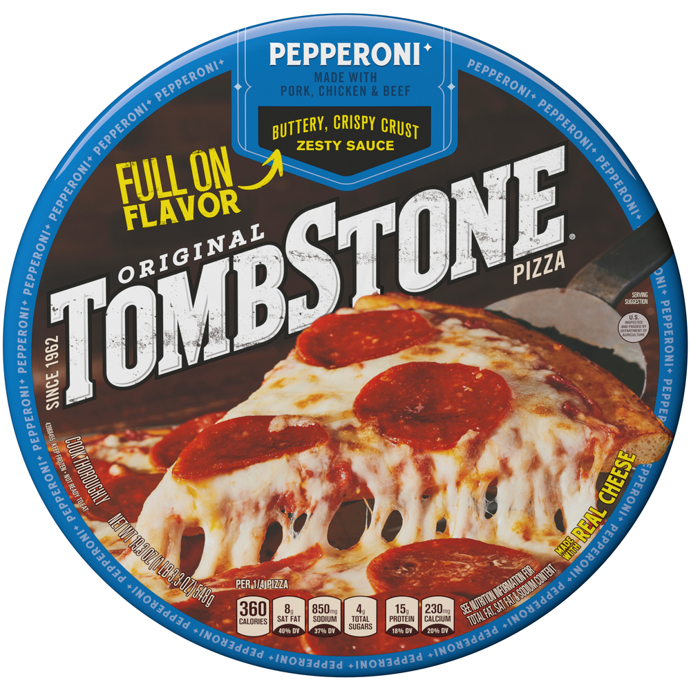 Tombstone Pepperoni Pizza 19.3 Oz "Per 1/4 Pizza: 360 Calories, 8g Sat Fat, 850mg Sodium, 4g Total Sugars, 15g Protein And 230mg Calcium." ![]() |