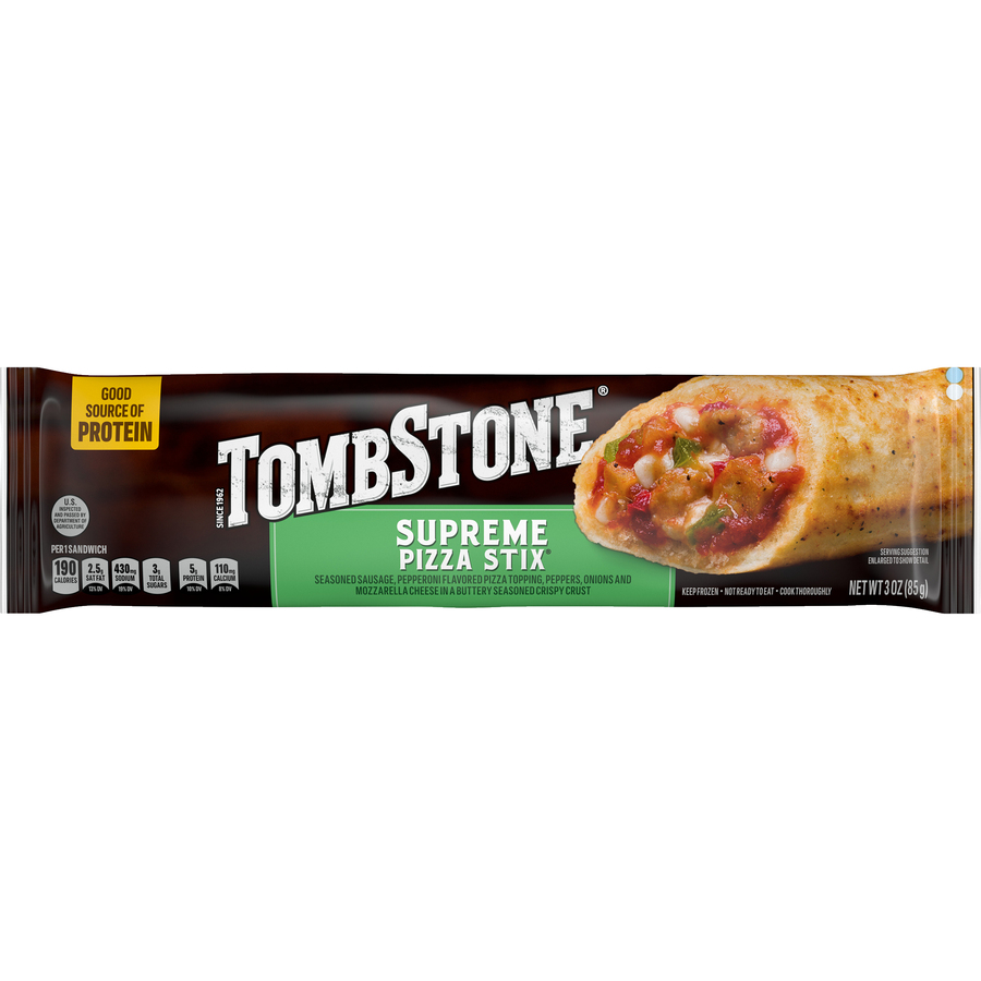 Tombstone Supreme Pizza Stix 3 Oz "One Sandwich: 190 Calories, 7g Total Fat, 10mg Cholesterol, 430mg Sodium, 27g Total Carbohydrate, 5g Protein" ![]() |