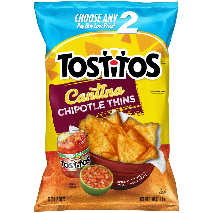 Tostitos Cantina Chipotle Thins 11 Oz "Eleven Chips: 150 Calories, 8g Total Fat, 0mg Cholesterol, 135mg Sodium, 18g Total Carbohydrate, 2g Protein" ![]() |