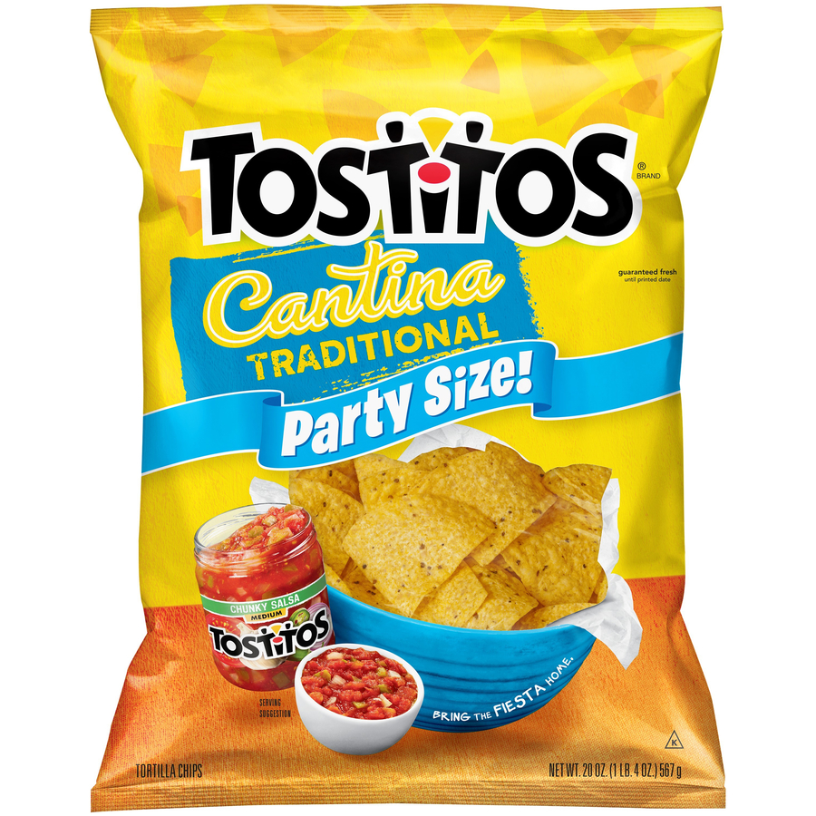 Tostitos Cantina Traditional Party Size 20 Oz "Seven Chips: 150 Calories, 7g Total Fat, 0mg Cholesterol, 110mg Sodium, 18g Total Carbohydrate, 2g Protein" ![]() |