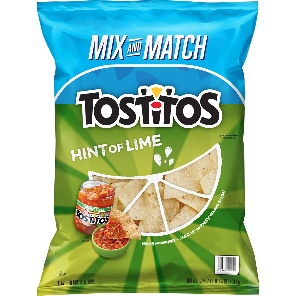 Tostitos Hint Of Lime 17.5 Oz "Six Chips: 150 Calories, 7g Total Fat, 0mg Cholesterol, 130mg Sodium, 18g Total Carbohydrate, 2g Protein" ![]() |