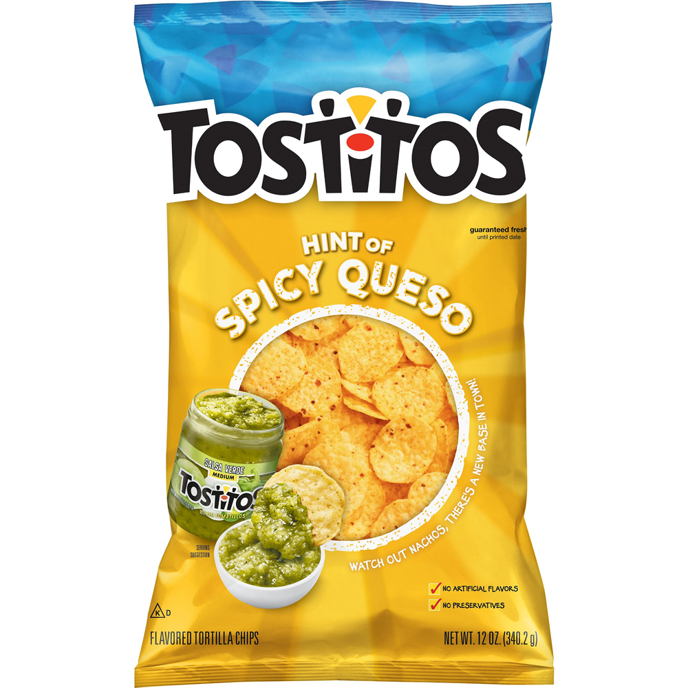 Tostitos Hint Of Spicy Queso 12 Oz "Nineteen Chips: 150 Calories, 8g Total Fat, 0mg Cholesterol, 180mg Sodium, 17g Total Carbohydrate, 2g Protein" ![]() |
