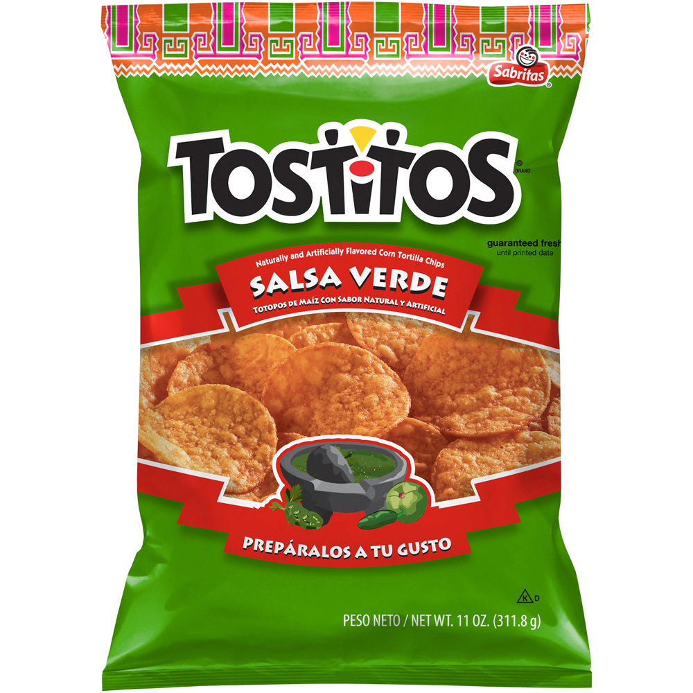 Tostitos Salsa Verde Tortilla Chips 11 Oz "Eleven Chips: 150 Calories, 7g Total Fat, 0mg Cholesterol, 190mg Sodium, 18g Total Carbohydrate, 2g Protein" ![]() |