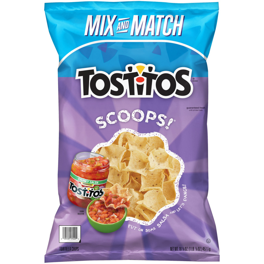 Tostitos Scoops 16 & 1/8 Oz "Eleven Chips: 140 Calories, 7g Total Fat, 0mg Cholesterol, 115mg Sodium, 19g Total Carbohydrate, 2g Protein" ![]() |